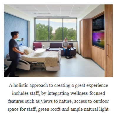 Moreover, a holistic approach to creating a great experience includes staff, by integrating wellness-focused features such as views to nature, access to outdoor space for staff, green roofs and ample natural light.